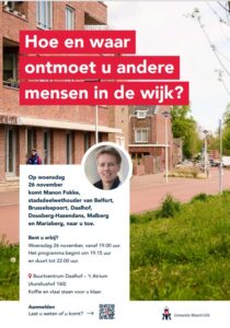 Aanmelden, laat weten of u komt via www.thuisinmaastricht.nl/stadsdeelbezoeken-2025